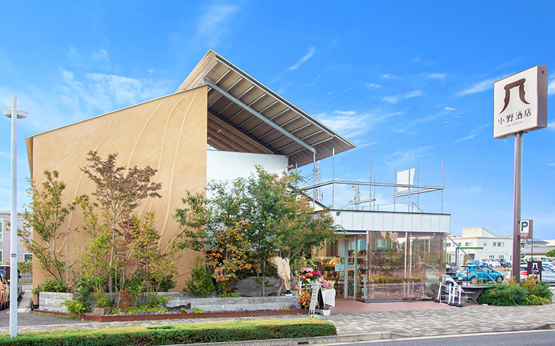 100年先の未来を見据えて挑戦する気持ちを忘れない歴史ある酒屋です。まず、注目すべきはその外観。ガラス張りでスタイリッシュな外観が清々しい印象を与えます。