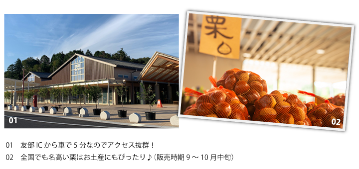 そして道の駅といえば直売所。特産の栗(販売時期9~10月中旬)や採れたての新鮮な野菜、お土産品をゲットするのをお忘れなく。