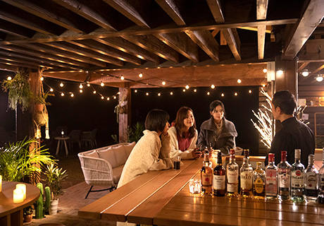 ディナーメニューの『春野菜たっぷり 彩りBBQコース』では、地元で採れた食材をふんだんに使った美味をウッドデッキにて楽しめます。また、アウトドアバーやお部屋でお酒を交わしながら会話を弾ませるのも◎