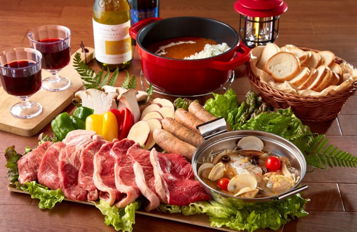 地元茨城県産の食材を使用したBBQ & 海の幸のアクアパッツァはどれも本格的。アルコール類やソフトドリンクも自由に飲むことが出来ます。