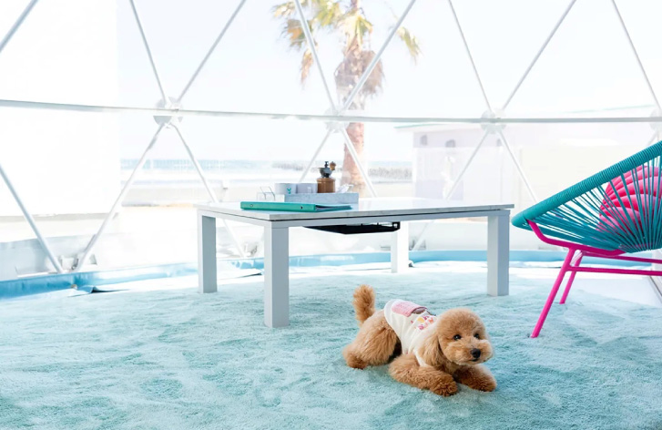 2棟のコクーンテントには、ロングリードやトイレシート・餌入れなどの犬用アメニティも充実!大きな窓からつながるドッグランは出入り自由で、わんちゃんが大自然の中で思いっきり走り回れます♪