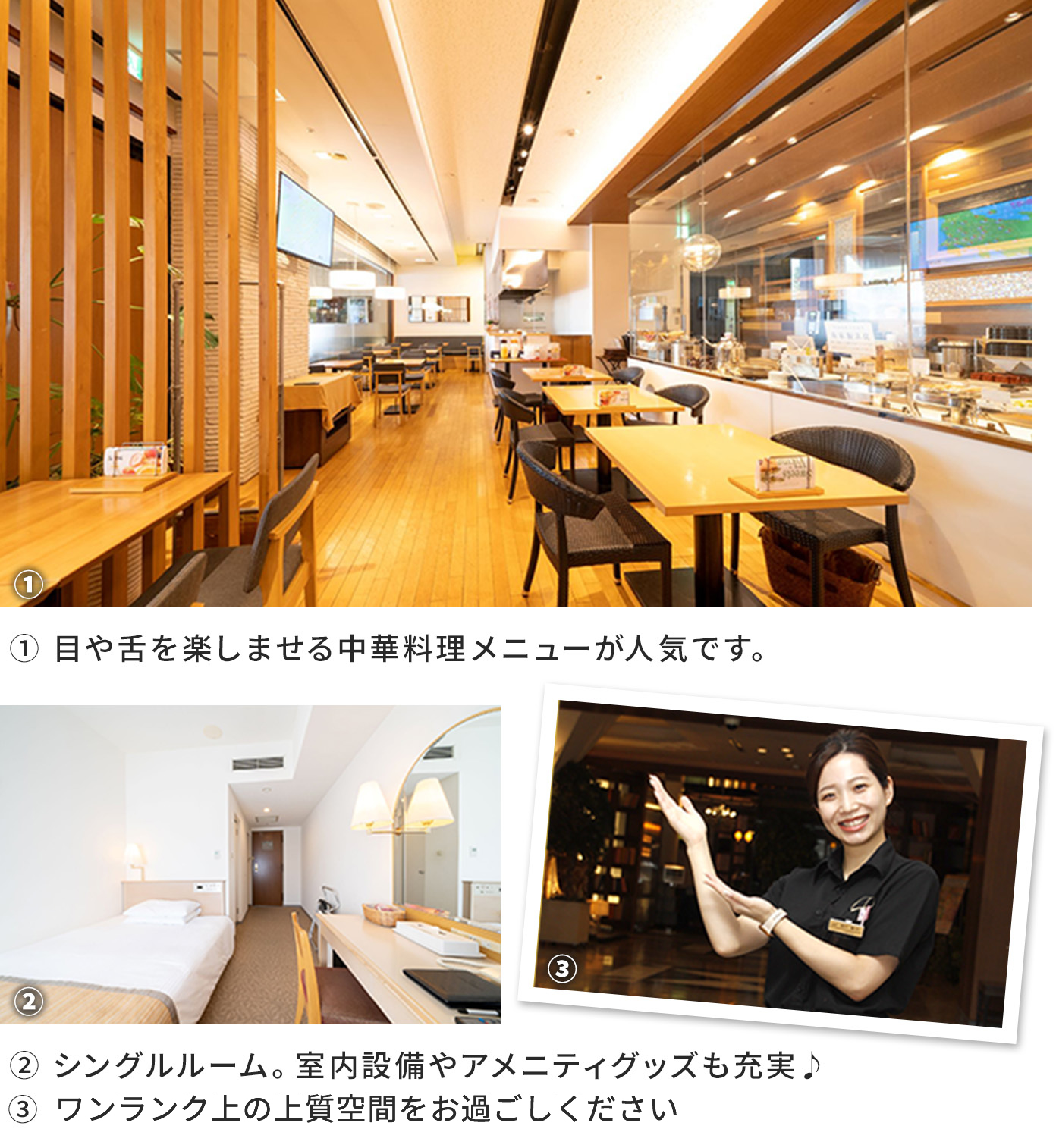 海も山もある恵まれた自然、歴史や文化が息づく街並、そんな魅力を満喫する拠点として心地よい空間をご用意しています。明るく清潔感あるお部屋で、快適な旅をワンランクUP!ホテル内のレストランも味に定評あり♪
