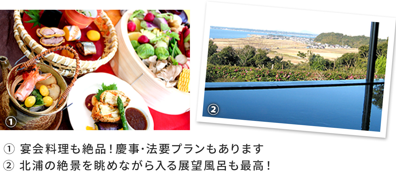 ワンランク上のおもてなしを目指す鹿島ハイツでは、宿泊だけでなくレストランでのボリュームたっぷりの食事や北浦を一望できる展望風呂での日帰り入浴も好評♪心も体も大満足になること間違いなし!