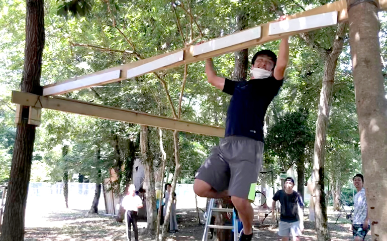 次期オリンピック種目!? 竹アスレチック「鹿すけ」