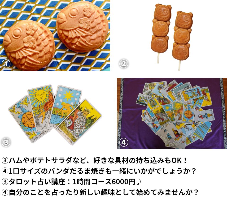 当店オリジナルのまーるいたい焼きをつくる体験ができます。家族や友人と楽しいひと時をお過ごしください♪作ったたい焼きはその場で食べても持ち帰りもOK!(約15個・1時間程度6,300円)