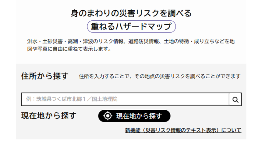 他にも、地図から探す方法や、市町村が法令に基づき作成・公開したハザードマップを確認することができます。あなたの街のハザードマップを調べてみましょう!