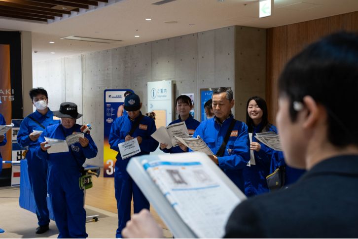 試合開始まで1時間を切った会場。メンバーは大勢の観客を誘導しながら、迷っている様子の人にはすかさず「大丈夫ですか」と駆け寄ります。