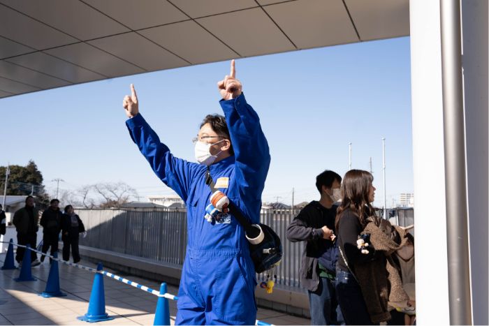 いよいよ会場オープン!ブースターたちが続々と入場します。RO-VOLTSメンバーは安全に入場できるよう、大きな声を出して列を誘導してサポート。