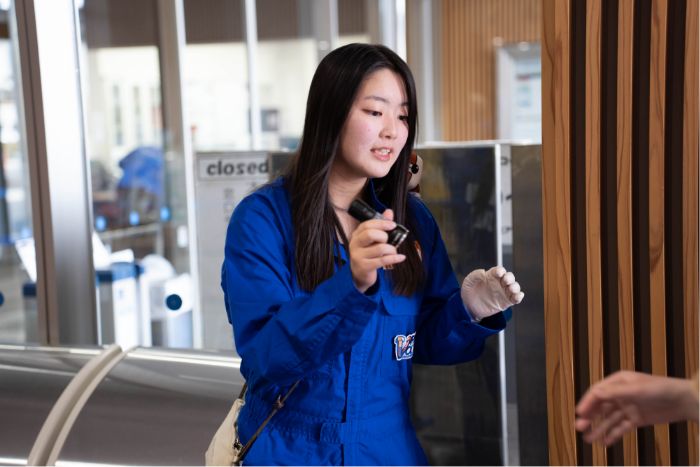 チケット確認をしながら、困っている人には優しく声を掛けるスタッフ