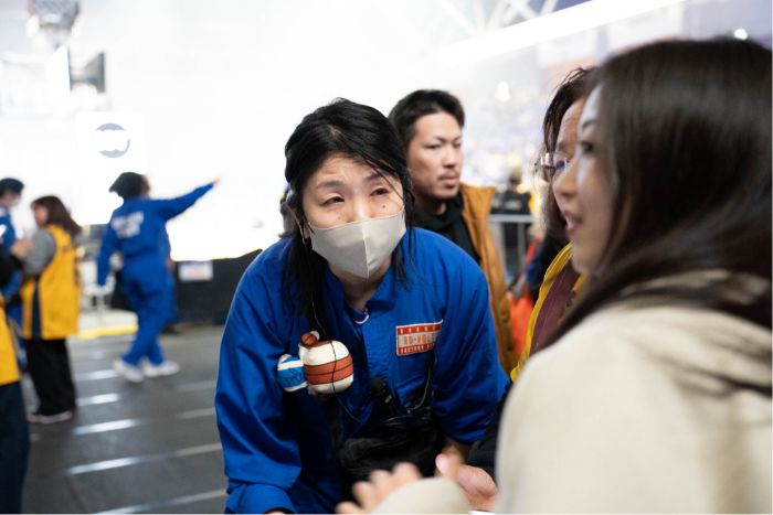 にぎやかな会場の中で観客の案内を続ける