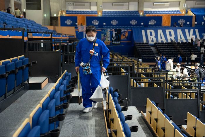 観客退場後は会場内の備品の片付ける