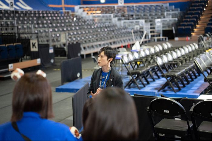 座席が分からない方にはアリーナ内まで一緒に案内するメンバー