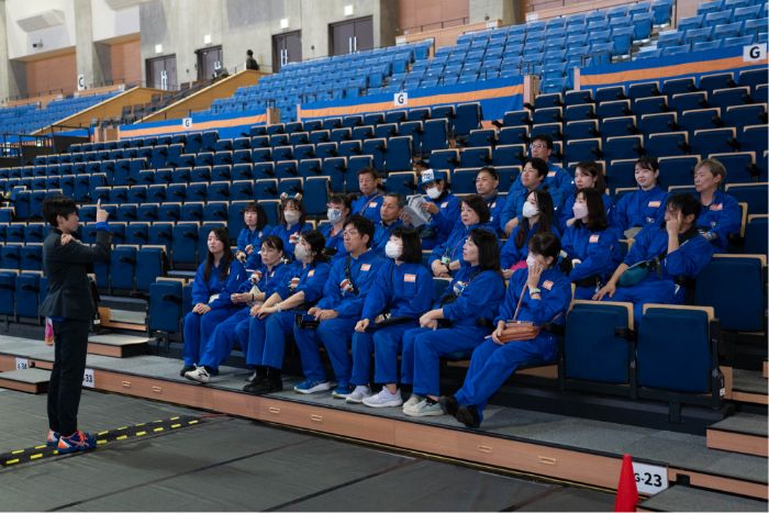 試合の直前までアリーナで誘導を実施