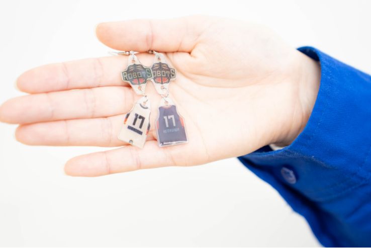 RO-VOLTSの方から作ってもらったと見せてくれたロボッツユニフォームのピアス