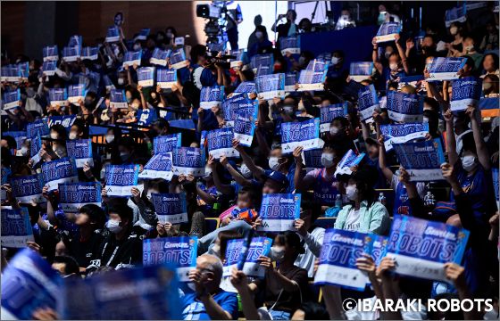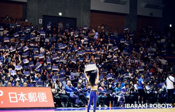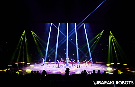 RDTの迫力あるダンスとガンガンに鳴り響く音楽で、会場の熱気もグッとUP!ブースター(茨城ロボッツを応援する人)の中にはペンライトを振る人もいるぞ。