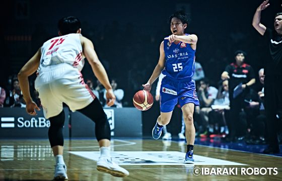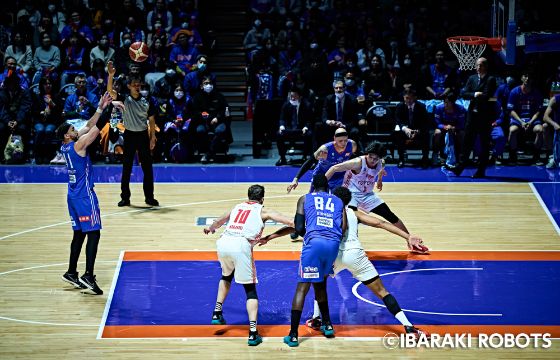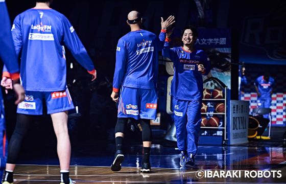 ブースターの歓声とともに、アウェーチームとロボッツの選手達がコートに入場してくる。思ったよりもコートとの近さに驚き!