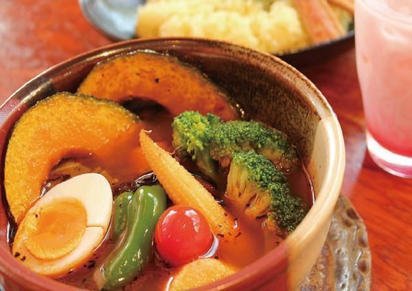 オリジナルスパイスが効いた、コラーゲンたっぷりのサラサラスープカレー。身体の芯から温まりますよ!