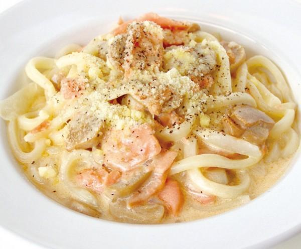 ◆サーモンとマッシュルームのカルボナーラ焼UDON…490円(容器代+50円)