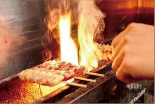 備長炭で焼く1本1本串打ちしたジューシー焼き鳥