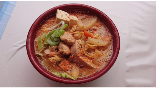 あんこうの肝を鍋に直接炒りつけ、味噌を加え、あんこうと野菜から出る水のみで煮込むという、超濃厚な風味が特徴です。水を使用しないため、あんこうの味が凝縮された濃厚な一品です。