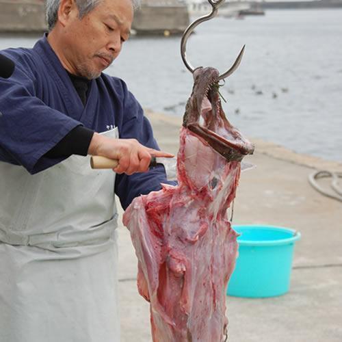 深海で獲れる高級魚として『西のフグ』と並び称されるアンコウ。国内では主に2種類が食用として流通し、北茨城に水揚げされるのは常磐沖の漁場で獲れる「キアンコウ(ホンアンコウ)」と呼ばれる種類のもの。普通のアンコウの体色が黒褐色であるのに対し、キアンコウはその名の通り黄色みがかかった黄褐色なのが特徴です。肝(きも)の脂が上質であることから、キアンコウは、より美味であるとされています。