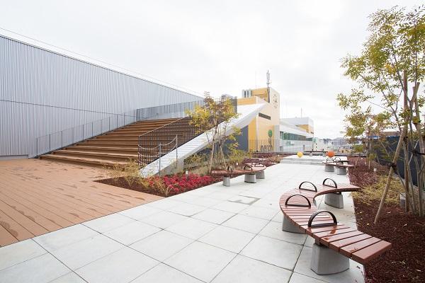 ステップガーデン&屋上ガーデン緑のある憩いのスペース。イベントの際に貸し出しも可能(有料)。