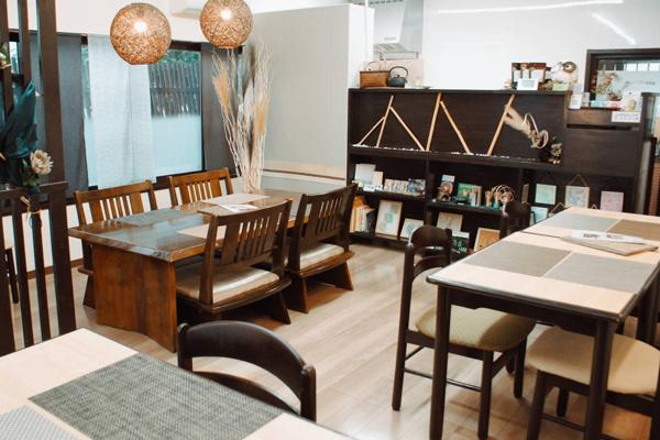落ち着いた雰囲気の店内にはソファ席・テーブル席を完備。香り豊かなほうじ茶ラテやお茶を贅沢に使ったスイーツ・料理が楽しめます。月替わりのランチも人気◎