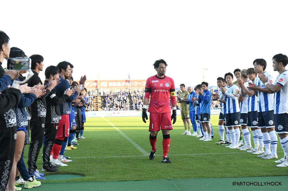 試合終了後は本間選手のプロ29年間という多大な功績、ホーム最後の勇姿を称えて、水戸側だけでなく、山形の渡邉晋監督や選手達、審判団も花道を作り、両サポーターからも割れんばかりの大きな拍手で偉大なレジェンドの退場を見送りました。