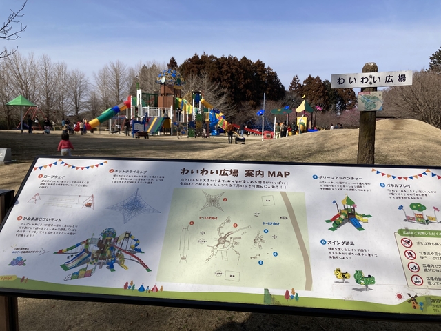 休日に遊具などある公園に遊びに行きました。入口からその広場まで坂もあり歩くのがちょっと遠いですが……。子供は楽しく遊べました。 遊具等あるところまで車で行けるといいのになと感じました。