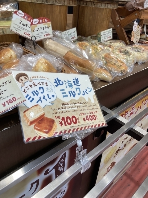 《ぜっぴん!!クロワッサン》 21周年際セールで7・8月土日は88円で購入できます。 小さめのクロワッサンで、表面にシロップが塗ってあるので、甘いです。 《あん食パン》 1斤だと500円を超えますが、1枚だと170円で購入できます。 あんこ好きにはおすすめのパンです。 他に塩パン(100円)を購入しました。 他にもおいしそうなパンがたくさん並んでいました。