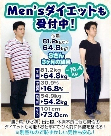 ダイエット=美容女性ではなく、健康管理の為にも良いです!最近は男性も多く、大きな成果が出ています。