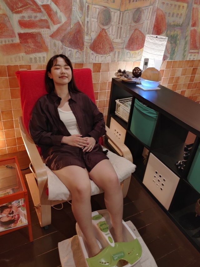 まずはフットバスで血流を促進させ、冷えや疲れを取り除いていきます。 足を温めることで、身体全体に血がめぐりポカポカと身体が温まります。