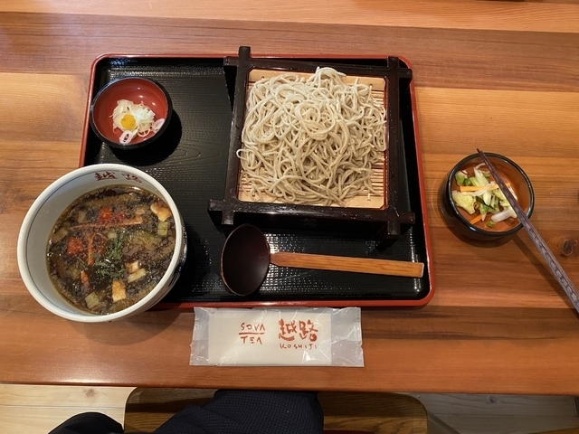 ◆越路セット1,700円 常陸秋そばのニハ 極細で香り、食感とも良く とても美味しい蕎麦 季節の野菜天ぷらは豊富な野菜が 揚げたてでサクサク これにけんちん汁、小鉢、デザート付。 つけ汁とけんちんがあるのが良い