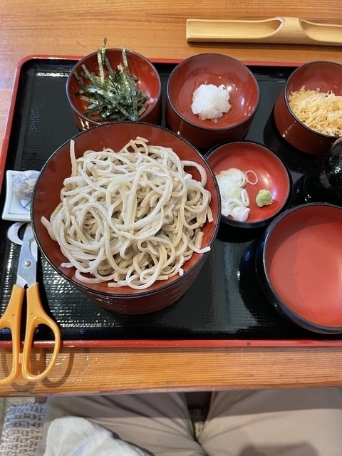 そばざんまい 1100円 色々なトッピングで味わえます。刻みのり、大根おろし、天かす、うずらの卵(カット専用ハサミ付き) お昼時は混むことが多いのですよ!