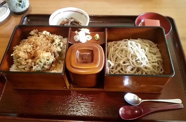今日もお昼は、常陸太田市の越路。 山吹膳1,100円 そばもおいしいが かきあげ天丼も美味しい。