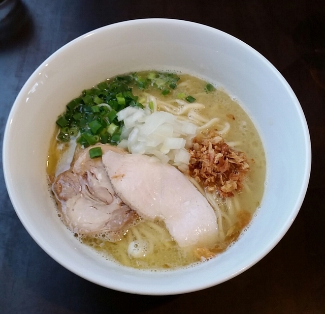 ●鶏白湯塩780円 スープは濃厚鶏白湯で醤油か塩が選べる。 麺は、中太麺で、もちもち。 トッピングに、鳥チャーシューが2種類。
