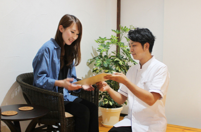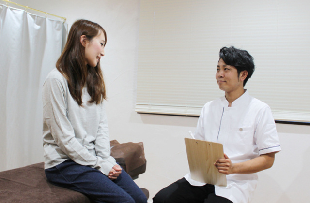 ①ご来店】 ようこそ!笑顔でお出迎え♪ ②問診票記入】 些細な事でも大丈夫ですのでお気軽にご記入ください ③着替え】 更衣室をご利用ください。お着替えもご用意しているので手ぶらでOK♪ ④問診】 問診票を参考にお聞きしていきます。ご不明な点があれば遠慮なくご質問ください。 ⑤歪み確認】 どこがどのように歪んでいるか詳しくチェック!この段階で必要な施術をオーダーメイドしていきます。 ⑥施術】 歪みを直していきます。痛気持ちいい感じで行っていきます! ⑦効果の確認】 施術前と比べての変化を確認。 ⑧【施術後の説明/施術プランのご提案】 改善に向け今後どれくらいの日数・間隔で来たらいいか、などをご提案☆ ※ご提案は強制ではありません ⑨【お会計・お見送り】 笑顔でお見送り♪