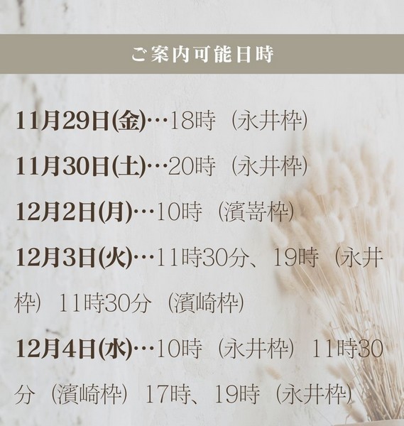12月4日(水)10時(永井枠)11時30分(濱崎枠)17時、19時(永井枠)