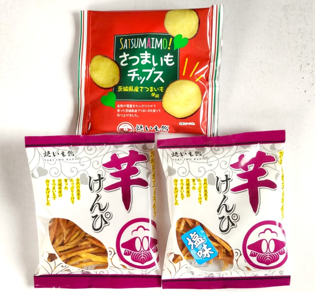 さつまいもチップス(100円)と芋けんぴ(75円)を購入しました。さつまいもチップスはサクサクッとした食感。芋けんぴは細く、「塩味」の方は甘さがやや控えめ。どちらも価格が安く、おいしいのでおやつなどにおすすめです。