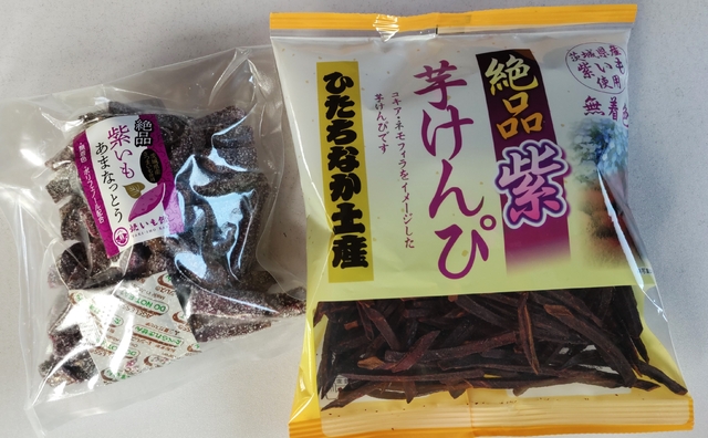 紫いもを使った甘納豆(248円)と芋けんぴ(180円)を購入しました。価格も安く、ちょっとしたおやつにいいと思います。普通のさつまいもを使った同じ商品もあり、値段が紫いもに比べて少し安い値段となっていました。