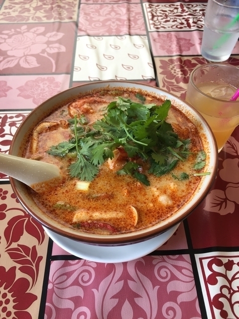 ランパラ利用でトムヤンクンラーメンいただきました。 初めてのパクチーとレモングラスと酸味にビックリ、、 本格的なタイ料理は刺激的でした。