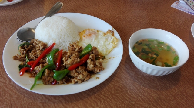 休日のお昼に訪問、ガパオライスをいただきました。お肉を豚か鶏から選べるので、豚肉にしました。スープが付いて980円。お味はおいしかったのですが、ランパラ慣れした自分には、あまりコスパは良くないと感じました。(これが妥当なのかもしれませんが) やはり平日のランチタイムがベストですね。