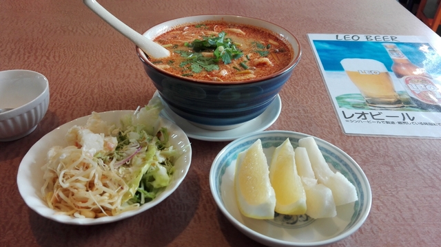 ランパラ初参加店との事で気になって初訪問 トムヤムクンラーメンをいただきました。 結論から言うと、文句無しの☆5つです。 メーンのトムヤムクンラーメン、サラダバー、スープ、ドリンク、デザートまで付いて税込500円は最高のコスパです。しかも、トムヤムクンがおいしい。ランパラの写真では小どんぶりのようですが実際は普通の大きさで食べごたえあります。日本人向けにマイルド感があってタイ料理が苦手な人でもいけるんじゃないでしょうか? 酸っぱ辛いトムヤムクンラーメン、とても美味しいです。具がたっぷり この日のスープはココナッツミルクのパンプキンスープ。これも、おいしかったです。 500円でタイ気分が味わえるランチタイム おいしかったです、ごちそうさまでした。 パッタイやタイチャーハンも気になるところでした。