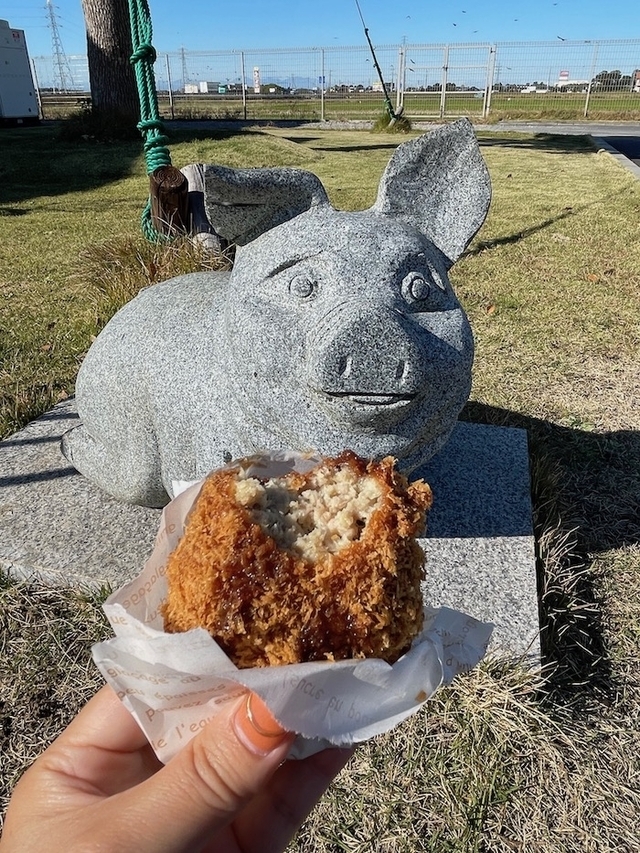 金黒メンチカツをパクッ! 店内には、おいしそうなウインナーやソーセージなどの食肉加工品や下妻産の金豚を使ったカレー等々などがキレイに陳列されていました。 メンチカツに使っているパン粉が粗めなので、1口目にサクッと音がしました。お肉は、厚みがあって食べ応えがありました☆