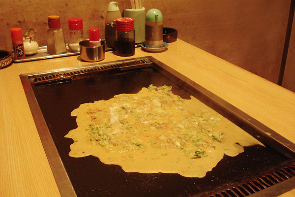 ミックス天の大をいただきました。 豚挽き肉やイカなどが入っています。 うまくひっくり返せると気持ちいいです。 ふわっとおいしかったです。 自分で焼くというお好み焼きの性質上、どうしても調理時間がかかります。 時間があるときに行くのをおすすめします。
