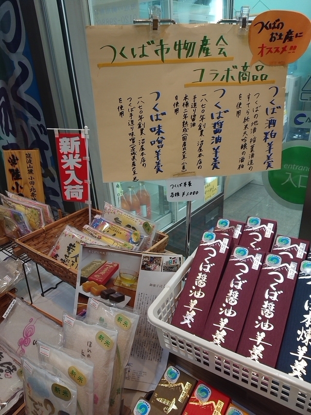 駅の改札口の手前にある小さなお店ですが、つくばの土産物がいろいろおいてあり、使いやすく便利だなと思いました。