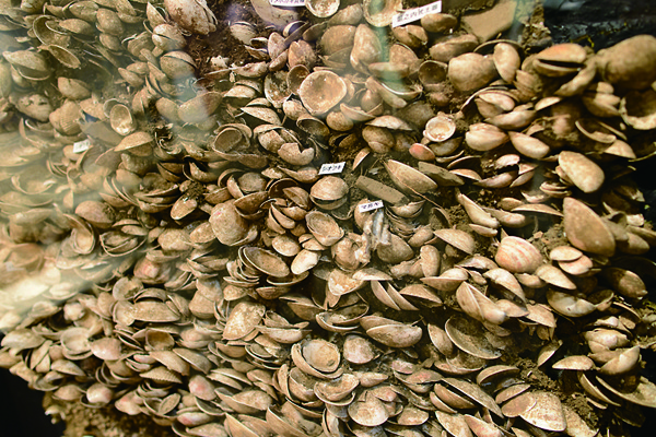 実際に発掘された貝塚が文化財センターに展示してあります。これは約5500年前のものです。