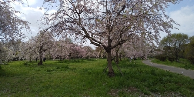 桜満開から一週遅れで行きましたが、八重桜?枝垂れ桜はまだ見頃でした。同時に雪みたいに舞う花びらがすごくキレイでした! 駐車場は第一が満車で第2に停めましたが、その近くに仮設トイレもテーブルもあり良かったです。