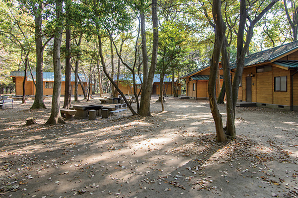 コテージの目の前にはバーベキューやキャンプが楽しめる設備が整っています。