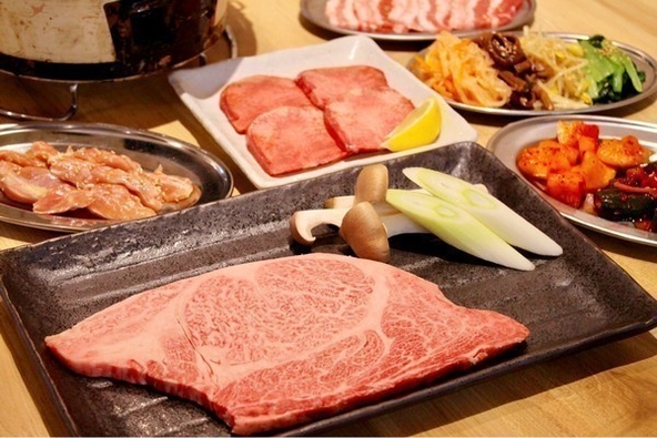 ―牛― ◆タン塩 2300円 (トッピング きざみネギ塩 200円) ◆和牛上ハラミ 2400円 ◆上ロース 1000円 ―常陸牛― ◆カルビ 1300円 ◆中落ちカルビ 1800円 ◆肩ロースステーキ(200g) 3500円 ―豚・鶏― ◆芋豚カルビ 800円 ◆トントロ 800円 ◆つくば鶏 とりもも 800円 ◆せせり 800円 ◆砂肝 700円 ◆やげんナンコツ 700円 ※上記メニューは塩・タレ・辛ダレからお選びください